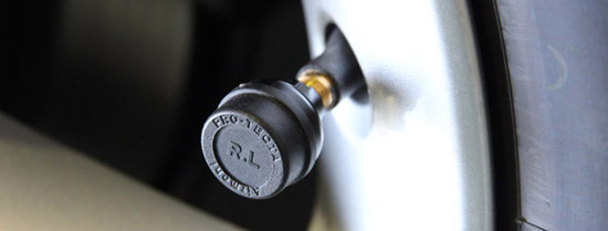 これらは空気圧モニターシステムとかTPMS(Tire Pressure Monitoring System)とか呼ばれているが、各タイヤに空気圧センサーを取り付けるもの。