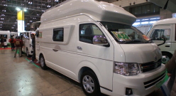 ジャパンキャンピングカーショー2016で発表された、ハイエース標準ボディベースのバンコン。一見して分かるように、大きなハイルーフを架装しているのが特徴。運転し易さと居住性の良さを両立させている。(続きを読む)