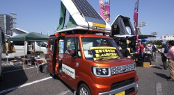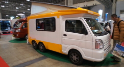 2009年7月24/25日に東京ビッグサイトで開催された東京キャンピングカーショー2009で、ひときわ人だかりが多かったのが、この「かるキャン」。初お目見えということだが、何と言っても軽トラックベースのキャンピングカーながら、居住部分がスライドアウトして室内が広がるコンセプトは実に斬新。しかも、天井も高くなり、スライドアウトした状態では、まるで三角屋根を持つコテージのような見た目となる。(続きを読む)