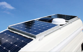 その中心はソーラーシステムにあり、ACSソラネル5.3の場合は、標準で145Wのパネルが2枚、オプションで140Wのフレキシブルパネルが1枚、計430Wものソーラーパネルがルーフに装備される。(写真下)