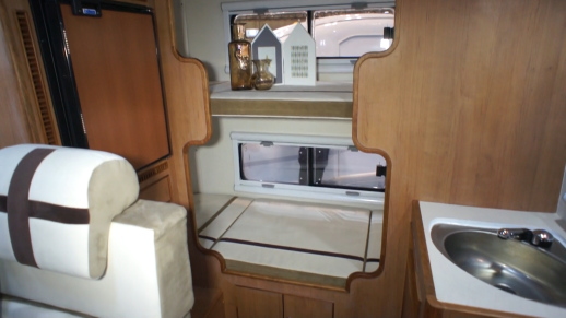 アルファコンセプトはファミリー向けではあるが、二人で使用する場合には、常設ベッドと大きな収納を持つコンパクトなキャブコンという位置付けにもなるのだ。