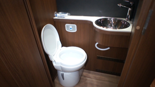 トイレルームにはカセットトイレと専用の手洗い、シャワールームには温水シャワーが標準装備される。
