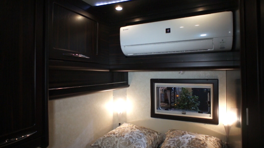 重厚で高品質感のある家具をふんだんに使用した室内は、欧米のモーターホームと競える仕上がりになっている。