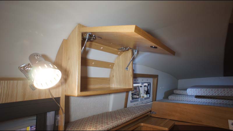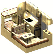 また就寝も、他のモデルのようにバンクベッド以外に常設ベッドを持たず、2名以上就寝する場合は、ダイネットを展開してフロアベッドをメークする必要がある。