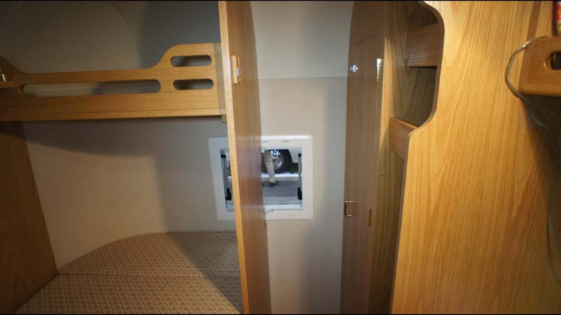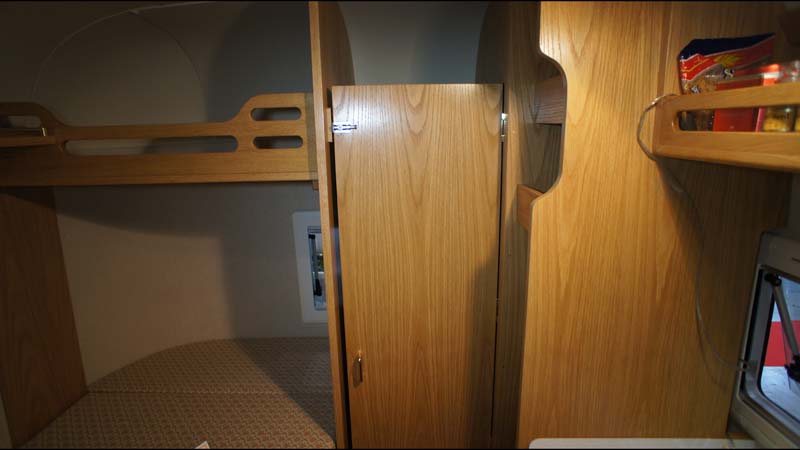 ただ、その分ダイネットと後部2段ベッドにシワ寄せが出ており、ダイネットは多少狭く、2段ベッドは、頭部分と足の部分の幅が異なる変形ベッドとなる。