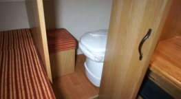 ユーティリティールームには、カセットトイレやポータブルトイレをオプションで設置できる。(写真下左)