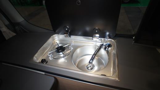 ギャレーは1口コンロとシンクが一体になったコンビネーションシンクがビルトインされている。