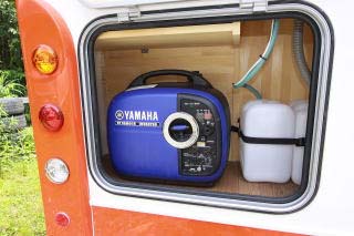 発電機は、ヤマハの1600Wを使用し、後部の収納庫に設置する。(写真下)