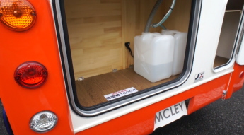 給排水タンクは各10リッターで、外部収納庫に設置される。