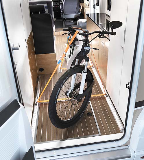 そこで、ギャレーコンソールの奥行きをセーブして自転車の積載スペースを稼ぎ出している。