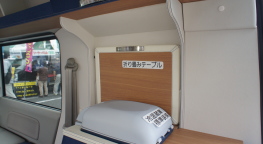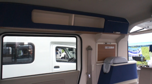 ハイエースベースのバンコン以上では、シートに着座するタイプが主流なので、軽バンコンの「ちゃぶ台」ダイネットは、軽バンコン独特のレイアウトスタイルと言ってよい。