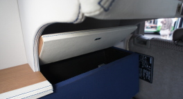 多くの軽キャンパーがベッド下収納庫を装備しているが、エブリイ・カブキのそれは高さが十分取られているので実用的。