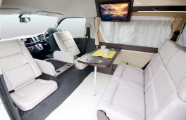 ダイネットは、2列目シートに3人掛けREVOシートを採用、これにより、計4名が前向きに着座してドライブできる。