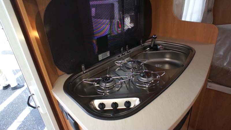 ギャレーは3口コンロを装備し、本格的な調理も可能。(写真下左)
