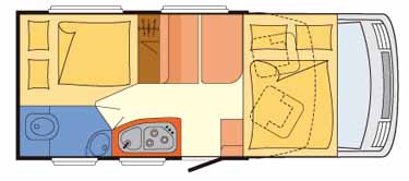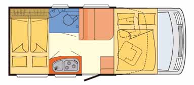 グローブバスI1とI2の違いはレイアウトで、ベッドが縦位置か横位置かを選択できる。