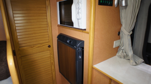 冷蔵庫と電子レンジが、後部のギャレーではなく、このスペースから大きく動かなくても手が届く範囲にあるのもうれしい。