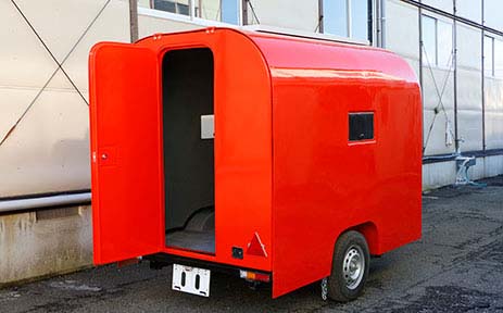 もちろんレジャー用途としても使え、オプションでシートやベッド、あるいはギャレーを装備すると、キャンピングトレーラーとして使用できる。(写真下)