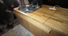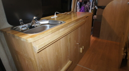 ギャレーコンソールは、2段ベッドの反対側に設置されており、大き目のシンクがビルトインされる。