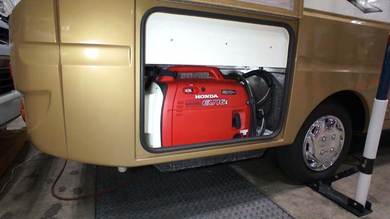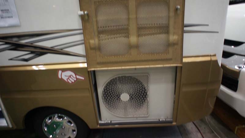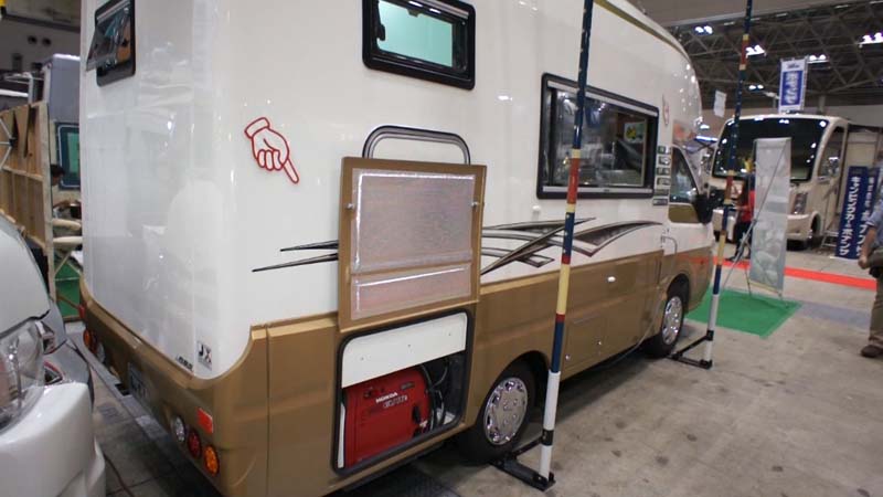 マンボウシリーズでは当初からオプションで家庭用エアコンと発電機をオプション設定しており、エアコンの室外機と発電機は、後部にうまく収納されている。