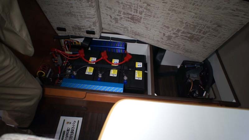 なお、サブバッテリーはオプションで3個積載することができ、エアコンとその他の電気製品を使っても、余裕がある。(写真下左)
