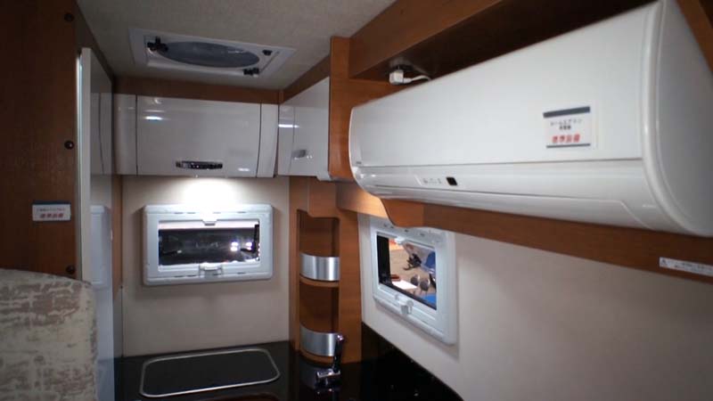 昨今、エアコンはキャンピングカーの希望装備の高順位にあり、バンコンでも家庭用エアコンを搭載したモデルが増えつつある。