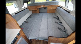 ハイマウントベッドの場合、エクステンションボックスで車幅方向に就寝するベッドは多いが、車長方向のベッド形態はあまり多くない。