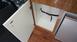 ギャレーコンソール下に収納される各19リッターの給排水タンクは、ギャレーの向かいにあるエントランスから最短距離で出し入れが可能。