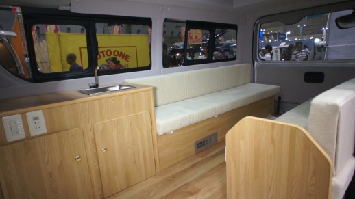 ナローエースはテッツRVセンターが製作・販売するハイエース標準ボディベースのバンコン。ロキシールーフと名付けられた、バンクを持つFRPハイルーフを標準で架装する。