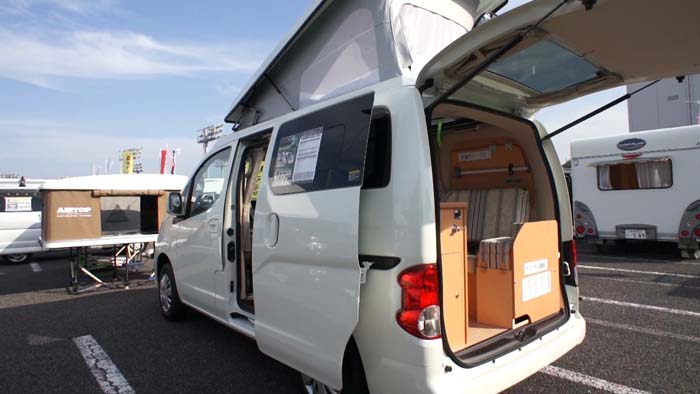 ポップアップルーフは同社オリジナルのもので、閉じた状態ではオリジナルのNV200からは10cmほど車高が高くなるが、見た目は全く普通のクルマに見える。