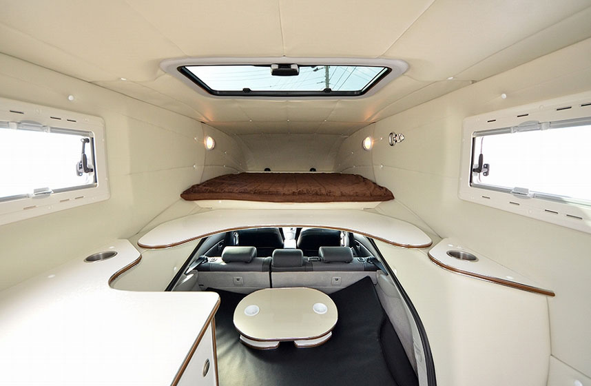 乗用車の手軽さと、キャンピングカーの居住性を併せ持った、今までにないパッケージングである。