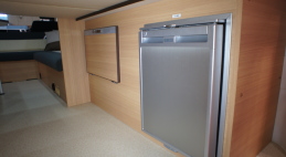 ただ、冷蔵庫は後部右側の収納コンソールにビルトインされているが、ベッド下であり、ギャレーからも遠い。