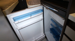 冷蔵庫は車格からすると小さめだが、ふたり旅ならちょうど良い大きさだろう。(写真下右)