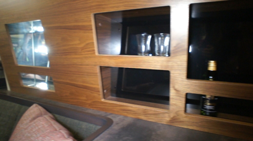 ふたり旅を想定しているので、前向き着座のシートではなく、広々とした、また優雅なダイネットである。