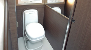 一方、トムバロンではカセットトイレが標準装備されており、より積極的なトイレルームとしての想定がされている。(写真下:トムバロンのトイレルーム)
