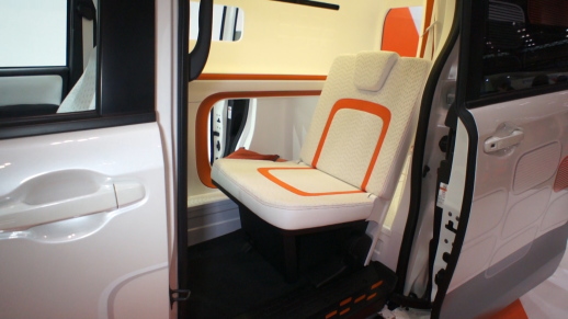 左部分は前後に折り畳みシートが装着され、2名が前向きに着座できる。