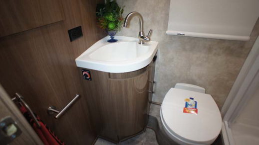 サニタリールームは、カセットトイレはもちろん、温水シャワーも標準装備される。