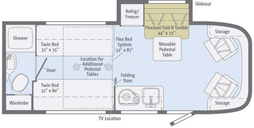 レイアウトは24種のフロアプランがあり、23Bはリアエントランスで、前部に大きなダイネットを持つプラン。