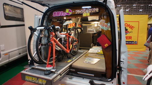 そして、もう一つの特徴は、自転車を2台積み込んでも、1名分の就寝スペースが、フロア右半分に確保されていること。