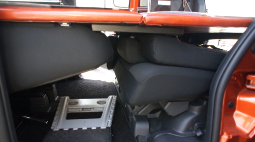 シートを折りたたんだ隙間も収納スペースとなる