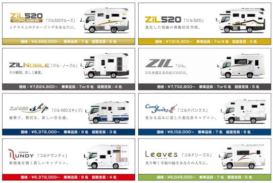 なお、「ジル520クルーズ」はいすゞエルフ、「ジル520」はトヨタカムロードをベース車にしている。