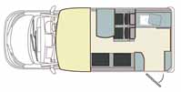 これに、コンパクトかつ低重心のシェルを架装してキャブコンに仕立てている。