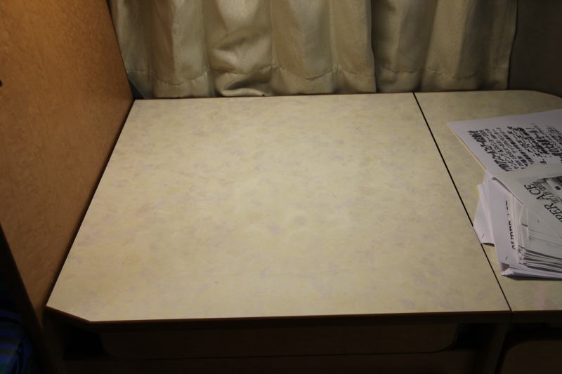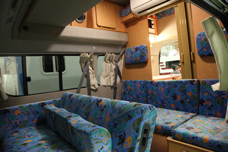 ダイネットはテーブルを挟んで後方を向いた3名掛けのシートと前方を向いた3名掛のシートが向かい合わさったもので、大人6名が着座できるが、実用的には4名である。前方のシートは反転させることにより、前向き着座が可能となり、走行時はこのフォーメーションとなる。