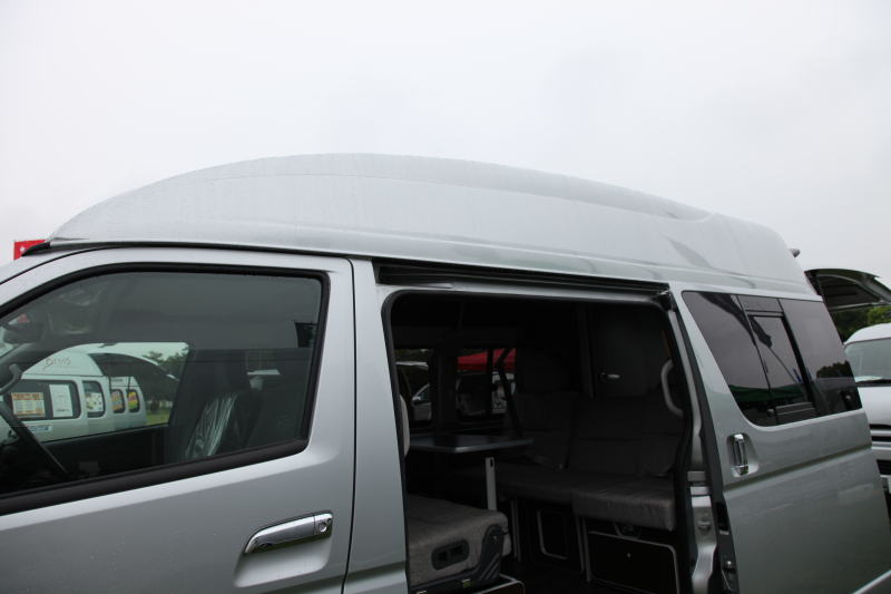 ワイドワゴンハイエースベースのキャンピングカーはスーパーロングベースに比べるとモデル数は極めて少ないが、スーパーロングよりも短い全長による取り回しのよさと、標準ボディーハイエースより広い室内幅で、根強い人気がある。ただ、ワイドワゴンではミドルルーフしか選べないため、オリジナルでは天井高を十分に取れない。このためバンクベッドタイプのFRPルーフを架装するケースが多いが、こうするとどうしても大型のルーフ架装となってしまい、キャンピングカー然としたスタイルになってしまうため、日常でも使用するユーザーが敬遠するケースがあった。