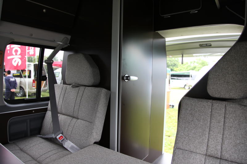 ダイネットとキッチン/トイレスペースを完全に分割したことにより、広々としたダイネットが実現しており、機能的にもすっきりと分けられているため、動線的にも有利なレイアウトといえる。なお、運転席からダイネットへの移動は、2列目シートを乗り超える必要があり、一旦外に出てからダイネットに入る想定となる。
