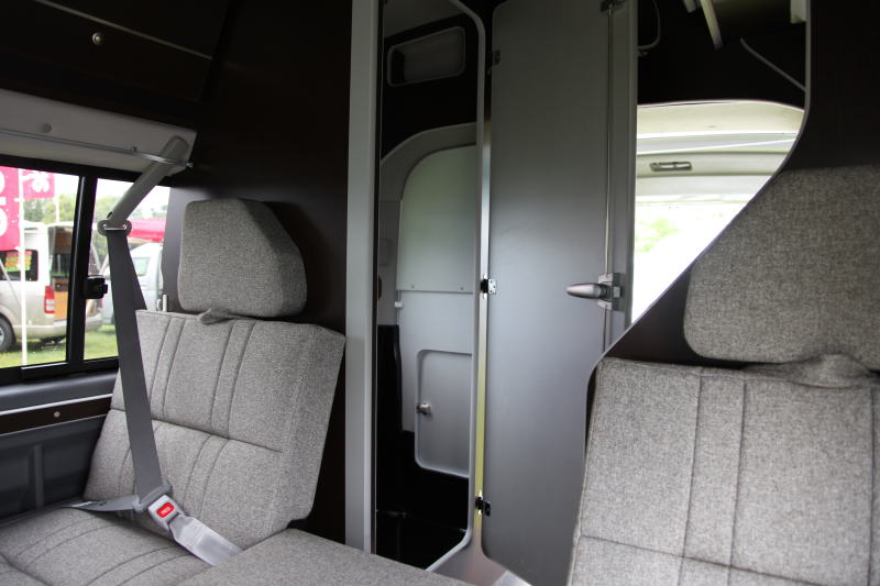 運転席すぐ後に、車幅方向いっぱいにとった進行方向対向着座のダイネットを配置、後方左側にギャレーを置き、その向い側にマルチユースルームを置いている。2列目シートはFASPシートを採用しており、移動中は進行方向着座にすることにより、移動中の着座姿勢を通常のクルマと同じにし、快適なドライブができるようになっている。かつ、ダイネット展開時は2列目シートを後ろ向き着座にし、大きなダイネットスペースが得られるようになっている。