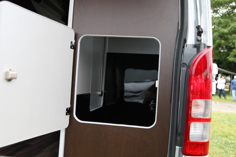 また、車両後部からポータブルトイレを出し入れするための扉も用意されている。なお、マルチユースルームは側面などを含め完全に防水処理を行っているわけではないので、シャワールームとしては使用できない。