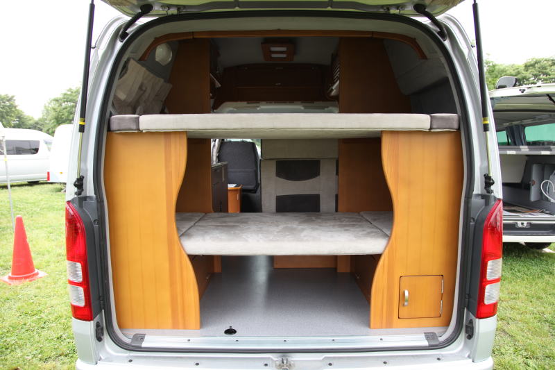 後部二段ベッドは床板を取り外すと、広大な荷室として使用できる。ただし、、取り外した床板を収納するスペースは特に用意されていないため、二段ベッドは常設ベッドとするか、荷室とするかを出発前に決めておくと良いだろう。上段のみベッドにして下段を荷室にする場合でも、全面が開口しているわけではないので、収納した荷物が丸見えになってしまうということはない。