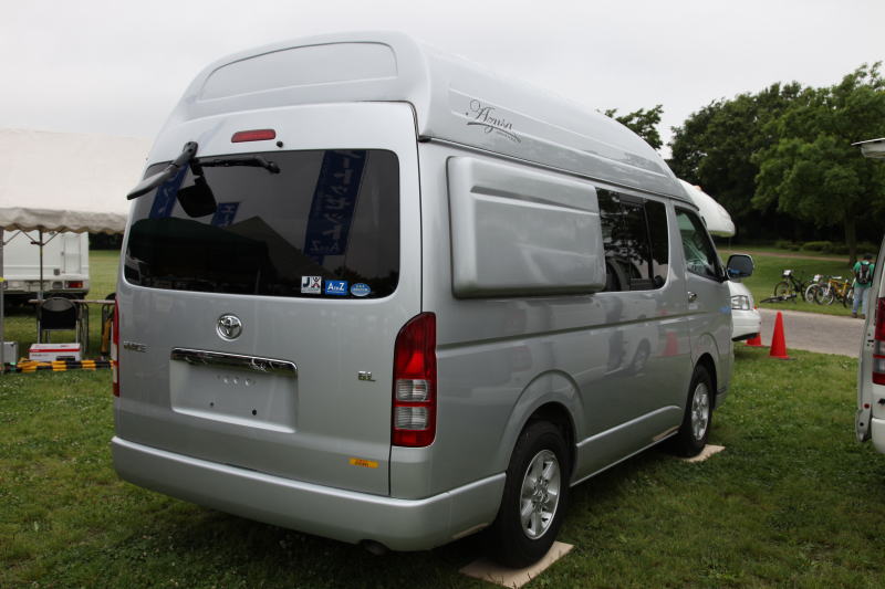 キャブコン、バンコンタイプのキャンピングカーを中心に幅広いラインアップをそろえるエートゥーゼットのハイエースバンコンキャンピングカーといえばアメリアとこのアズサである。スーパーロングを使用するアメリアに対し、アズサはワイドワゴンボディーを使用しており、全長5mを切ることによる取り回しのよさが特長で