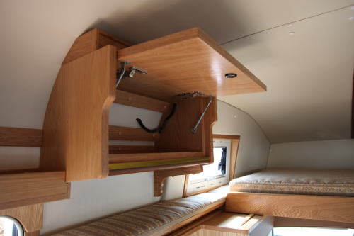 十分な収納力を持つオーバーヘッド収納と後部ベッド下の収納庫