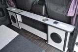 通常、ハイエース標準幅ボディでは、エクステンションウインドウを装備しても大人の就寝は無理だが、ロードセレクトには、更に横幅を広げることのできる”ポップアップウインドウ”を装備。(写真下右)